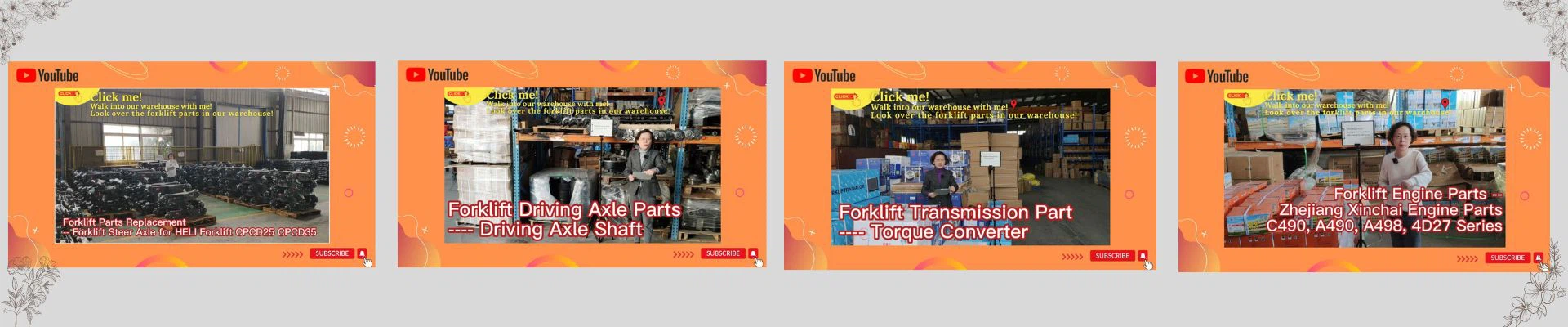 Styrken ved vores virksomhed er, at vi leverer hele udvalget af gaffeltruckdele til HELI gaffeltrucks, og mange dele til JAC gaffeltrucks, Hangcha gaffeltrucks. Vi leverer også hele udvalget af Kina-motorer og motordele såsom Xinchai, Quanchai, FAW, YTO, Chaochai osv.